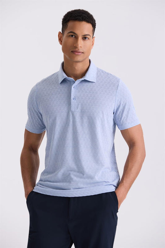 Blue Slim Fit Patterned Shirt Collar T Shirt