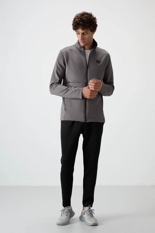 Black Gray - Black Scuba Fabric Men's Tracksuit Set - 85199