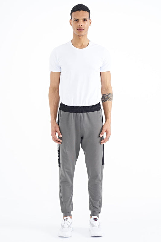 Grey Melange Logo Embroidered Detailed Side Pocket Standard Fit Men's Tracksuit Bottom - 84967
