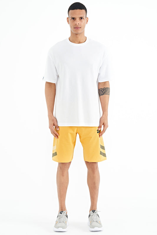 Mustard Front Back Print Detailed Standard Molded Rubber Waist Men's Shorts - 81250