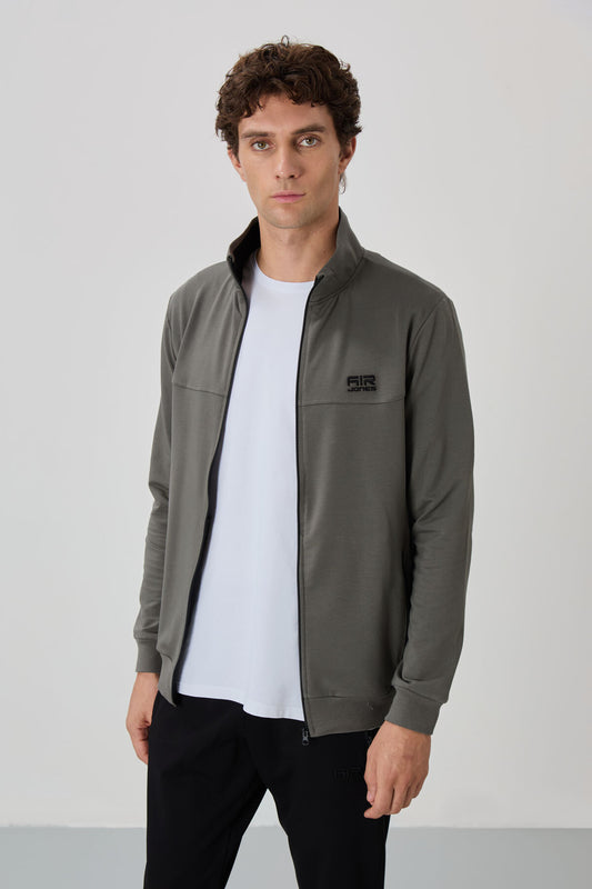 Grey Melange Hidden Pocket Detailed Standard Fit Men's Jogger Tracksuit Bottom - 84958