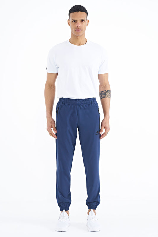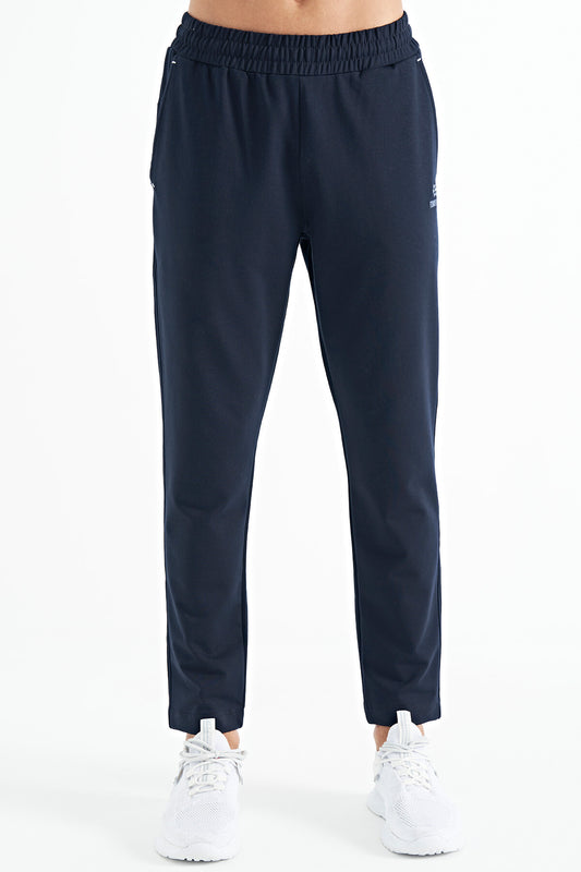 Navy Blue Logo Embroidered Side Pocketed Standard Fit Men's Tracksuit Bottom - 84967