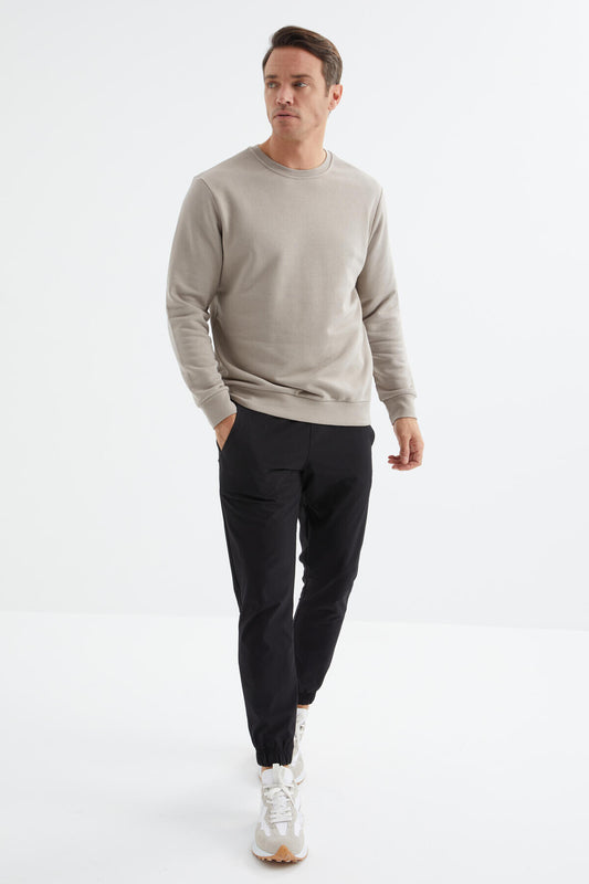 Dark Beige Basic Round Neck Comfort Fit Men's Sweatshirt - 88053