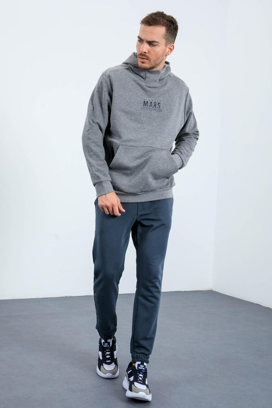 Grey Melange Mars Print and Back Printed Comfortable Fit Men's Hooded Sweatshirt - 88032