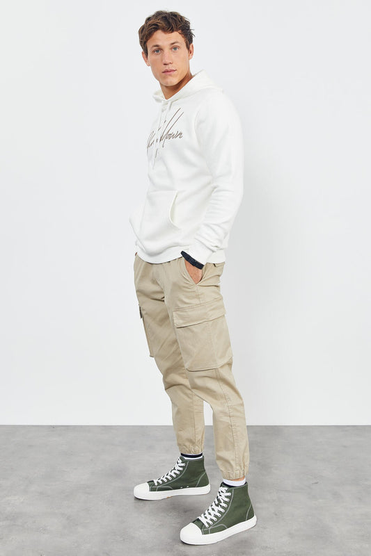 Ecru Embroidered Hooded Comfort Fit Men's Sweatshirt - 88007