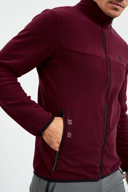 Purple Embroidered High Neck Zippered Standard Fit Men's Sweatshirt Fleece - 87992