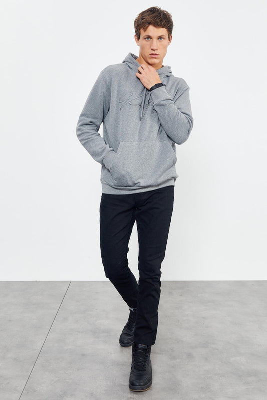 Gray Melange Embroidered Hooded Comfort Fit Men's Sweatshirt - 88007