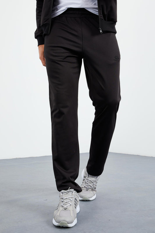 Black High Collar Zippered Standard Fit Classic Cuff Men's Tracksuit Set - 85162