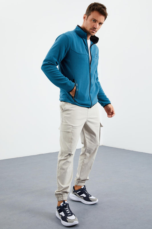 Petrol Blue Collar Zippered Standard Mold Cuffed Men's Tracksuit Set - 85160