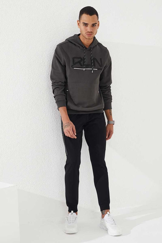 Anthracite Melanj Yarn Embroidered Standard Mold Hooded Men's Sweatshirt - 87887