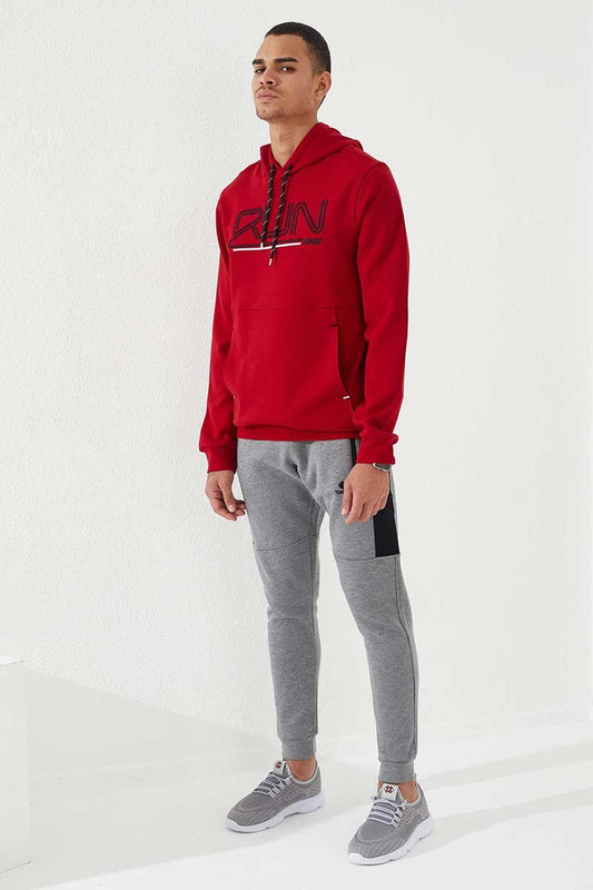 Red Embroidered Letter Standard Fit Men's Hooded Sweatshirt - 87887