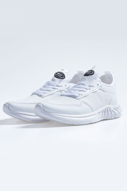 White High Sole Laced PU Leather Men's Sports Shoes - 89115