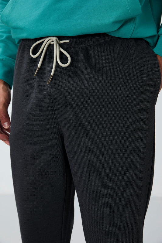 Dark Gray Textured Surface Standard Fit Men's Tracksuit Bottom - 82156