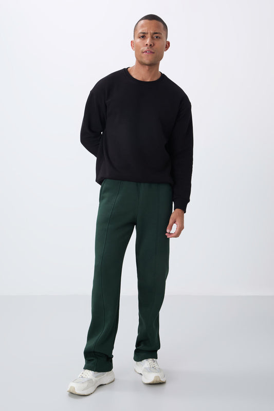 Forest Green Cotton Thick Fleece-Lined Soft Textured Oversize Embroidered Men's Tracksuit Bottom -82146
