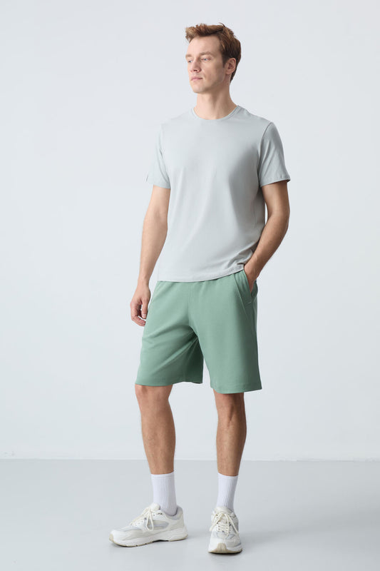 Light Green Cotton Thick Soft Textured Standard Fit Basic Men's Shorts - 81278