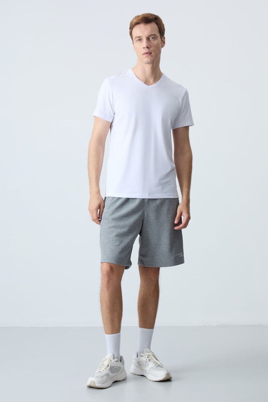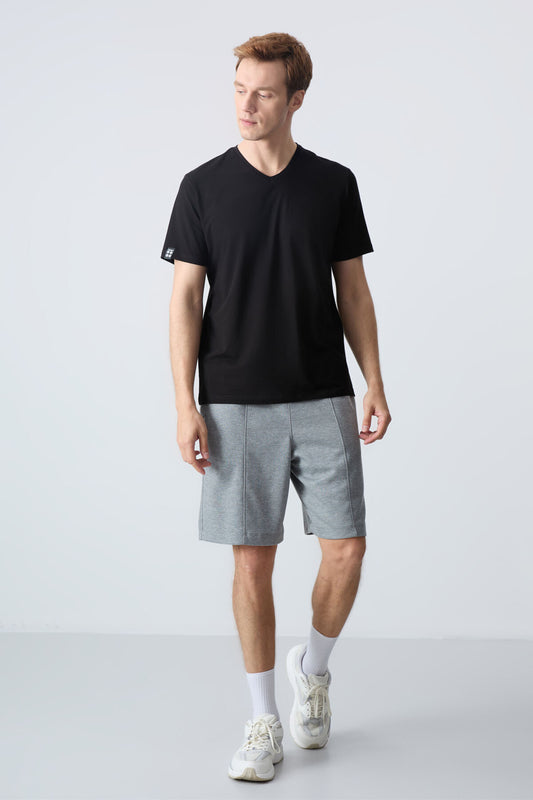 Grey Melange Cotton Thick Soft Textured Standard Fit Basic Men's Shorts - 81281