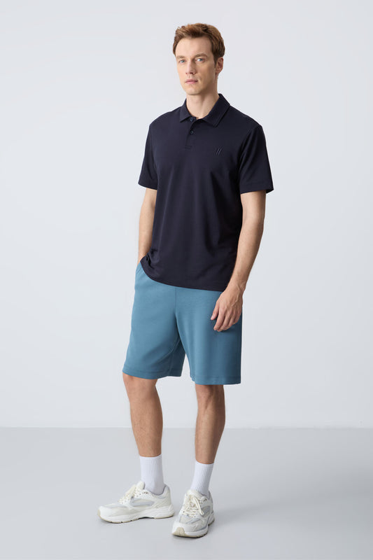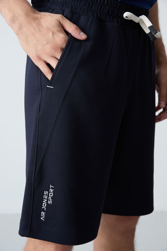 Navy Blue Cotton Thick Soft Textured Standard Fit Basic Men's Shorts - 81278