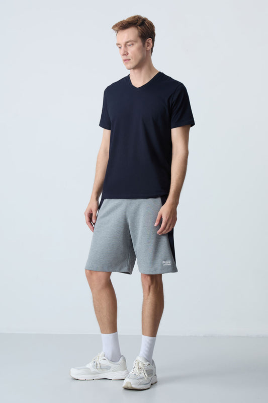 Grey Melange Cotton Thick Soft Textured Standard Fit Basic Men's Shorts - 81280