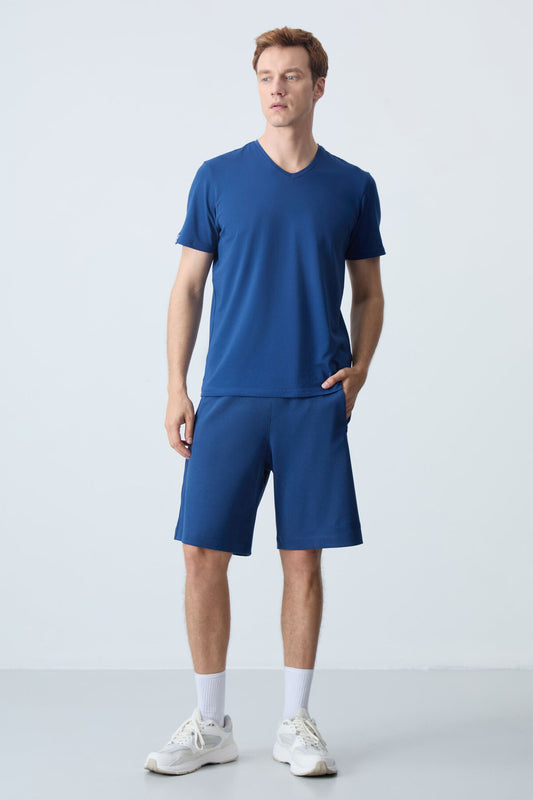 Navy Blue Polyester Breathable Textured Thin Flexible Standard Fit Men's Performance T-Shirt - 88391
