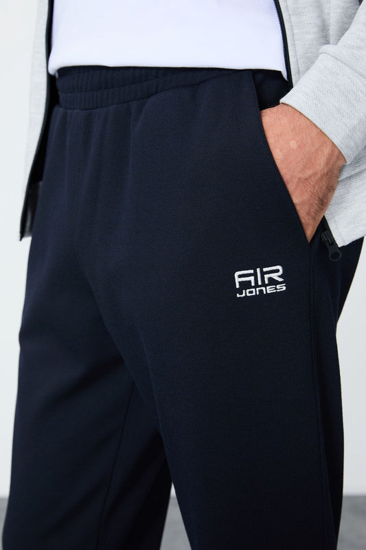 Navy Blue-Green Textured Surface Standard Fit Embroidered Men's Tracksuit Set - 85248