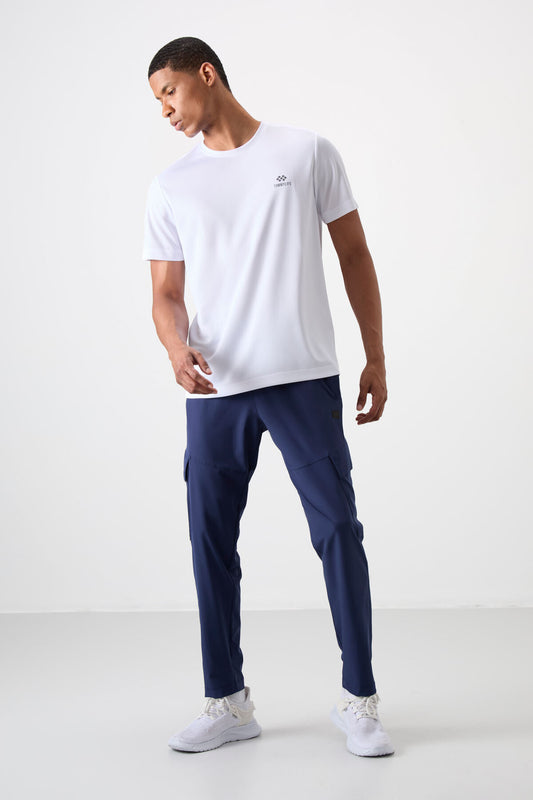 Navy Blue Polyester Breathable Textured Thin Flexible Standard Fit Men's Performance T-Shirt - 88385