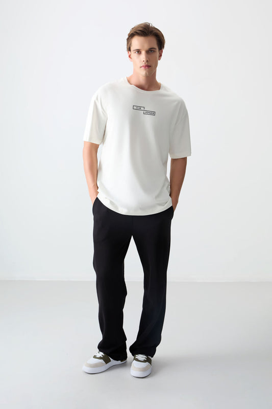 Ecru 100% Cotton Thick Soft Textured Oversize Fit Printed Men's T-Shirt - 88361