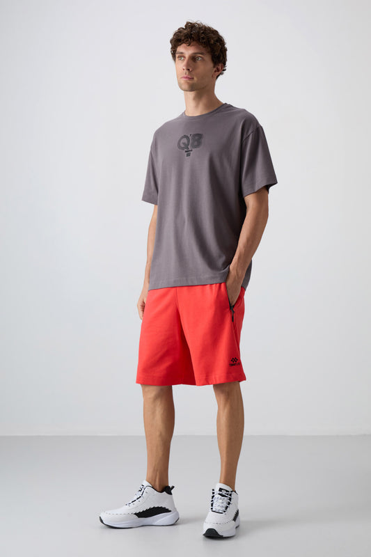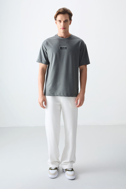 Dark Grey Cotton Thick Soft Textured Oversize Fit Basic Men's T-Shirt - 88378