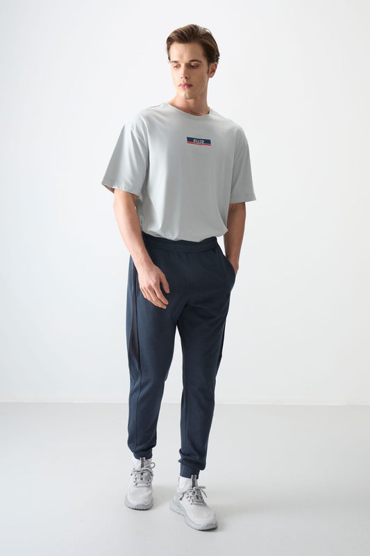 Indigo Textured Surface Standard Fit Embroidered Men's Tracksuit Bottom - 82126