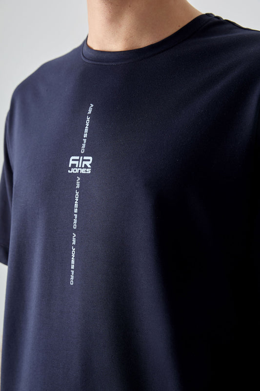 Navy Blue Cotton Thick Soft Textured Oversize Fit Printed Men's T-Shirt - 88343