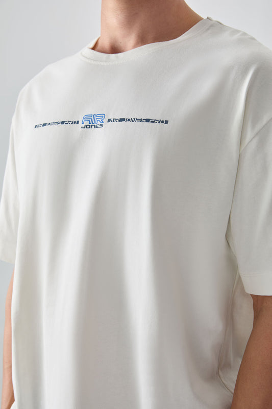 Ecru 100% Cotton Thick Soft Textured Oversize Fit Printed Men's T-Shirt - 88357