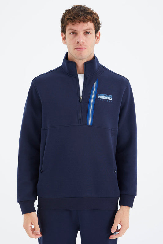 Indigo Blue Stand Collar Half-Zip Hidden Pocket Detailed Relax Fit Men's Tracksuit Set - 85221