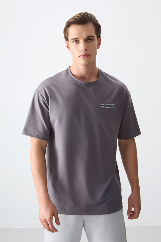 Dark Grey Cotton Thick Soft Textured Oversize Fit Printed Men's T-Shirt - 88375
