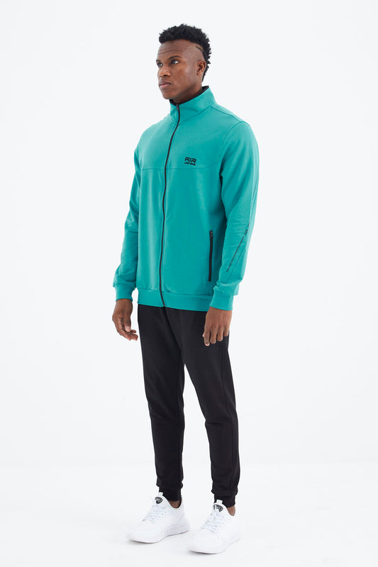 Stone Collar Hidden Pocket Detailed Relax Fit Men's Tracksuit Set - 85220