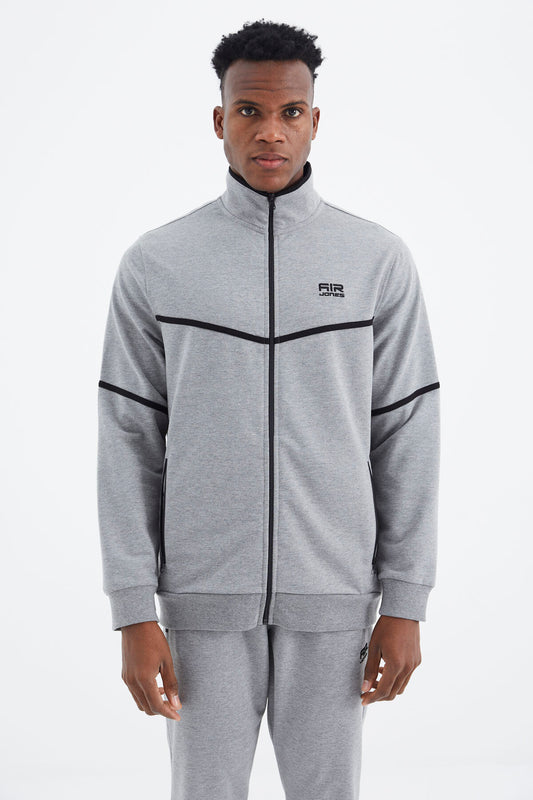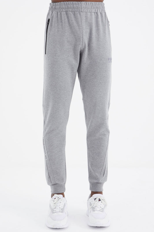 Grey Melange Textured Surface Standard Fit Embroidered Men's Tracksuit Bottom - 82126
