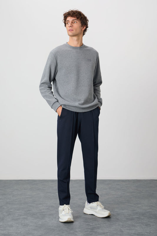 Grey Melange Round Neck Ribbed Shoulder Detailed Relax Fit Men's Sweatshirt - 88279