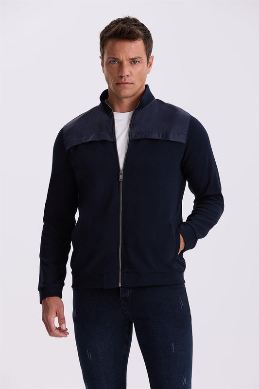 Navy Slim Fit Cotton Lycra Tracksuit With Zipper Wrap