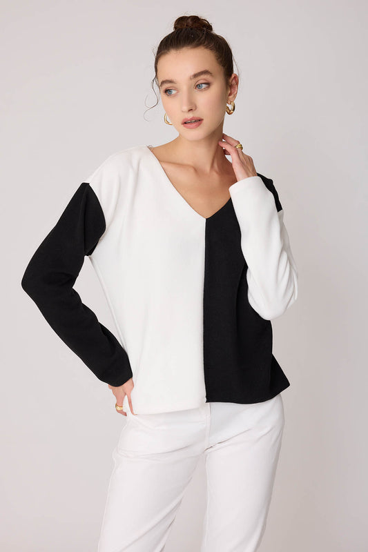 TWO COLORS V COLLAR KNITTED BLOUSE