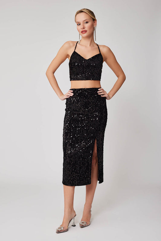FRONT-SPLIT SCALE SKIRT