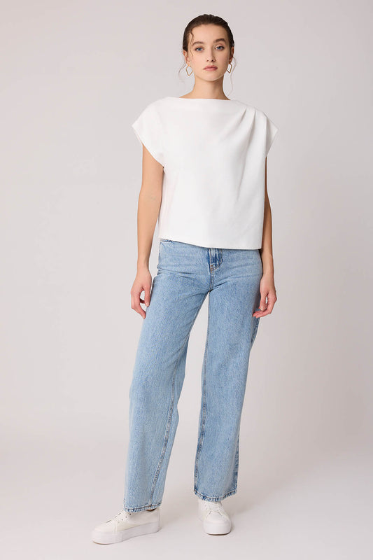 SHORT SLEEVE WITH SHOULDER CURVES KNITTED BLOUSE