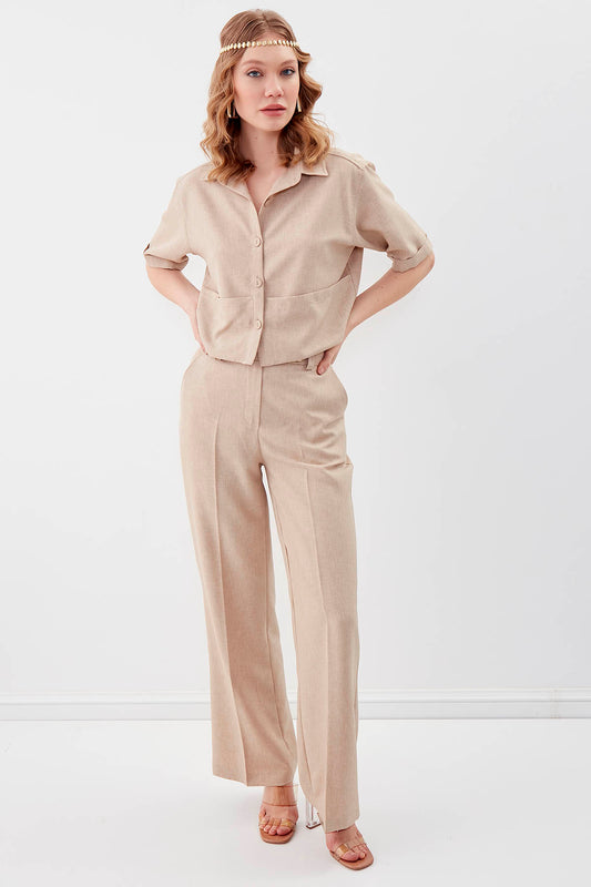 VISCOSE LINEN COMFORTABLE TROUSERS WITH ELASTANE WAIST
