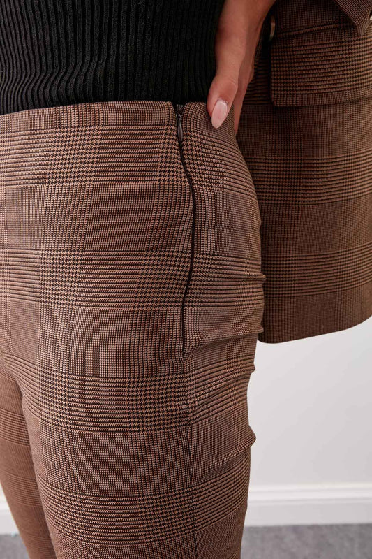 PLAID PATTERN HIGH-WAIST TROUSERS