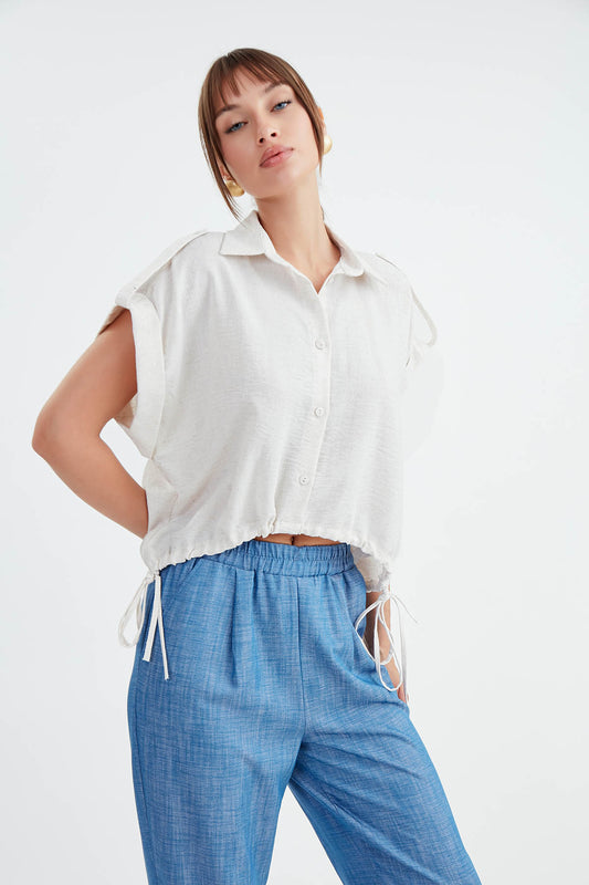 VISCOSE LINEN SHIRT WITH THE WAIST