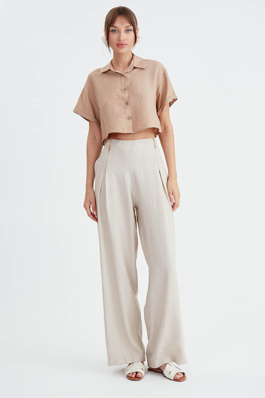 VISCOSE FLAXEN POLLEN TROUSERS