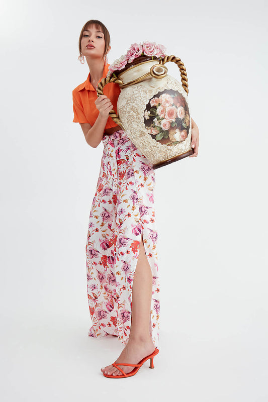 TROUSERS WITH FLOWERS, WAIST-BINDING