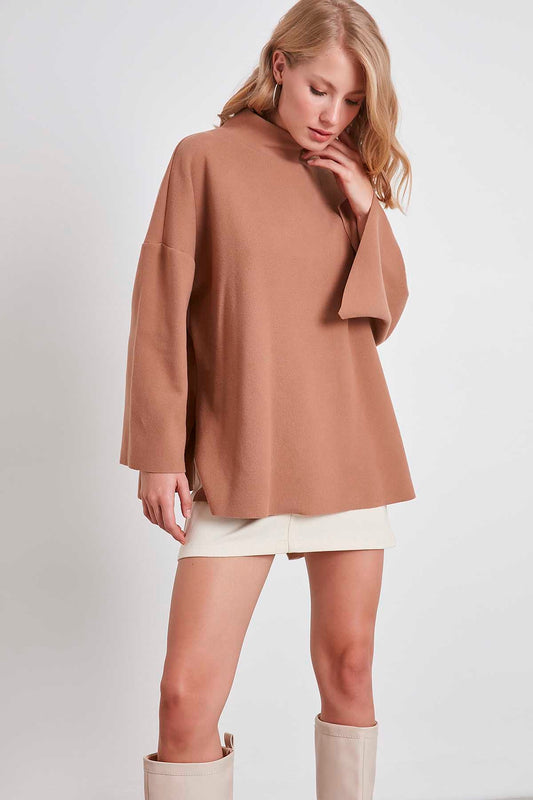 LOW SLEEVE SIDE SPLIT KNITTED COMFY BLOUSE
