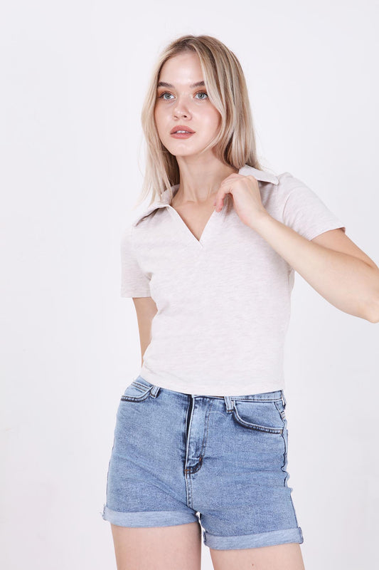 POLO COLLAR COTTON CROP T-SHIRT