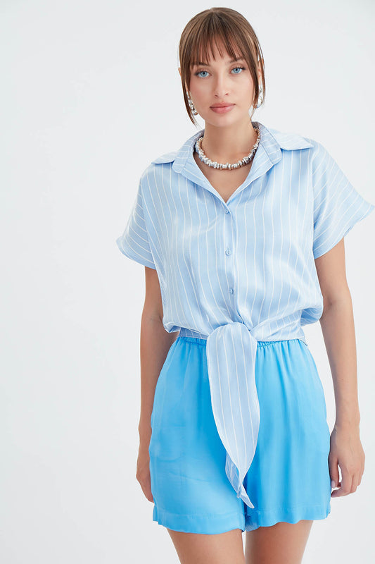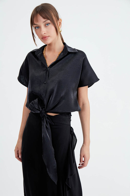 BRIGHT SATIN SHIRT WITH WAIST BOW