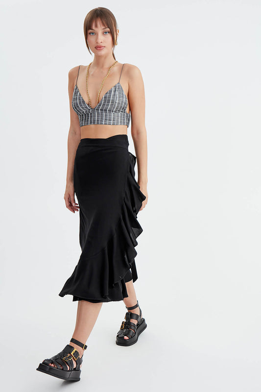 LACE EMBROIDERED MIDI HEIGHT SKIRT