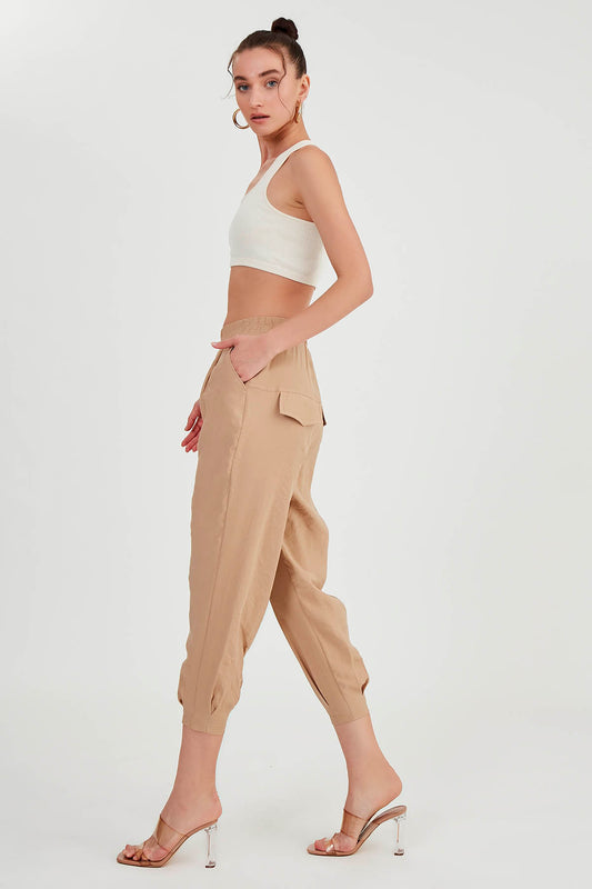 CROP TROUSERS WITH PLEATED-BACK COVER POCKET