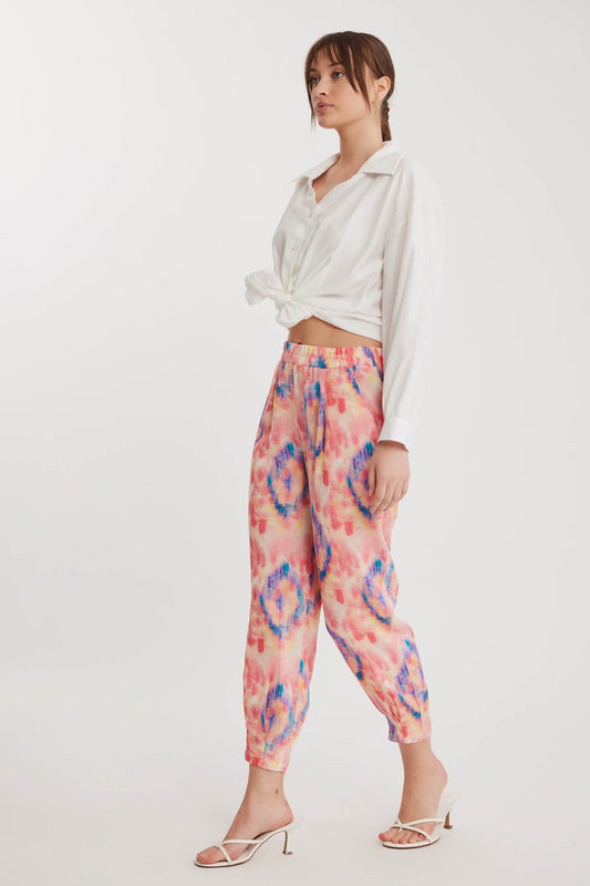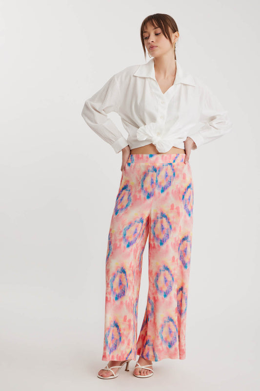 BELGIAN STYLE ELASTANE WAIST WIDE-LEG BOHEMIAN COLORED PATTERN TROUSERS